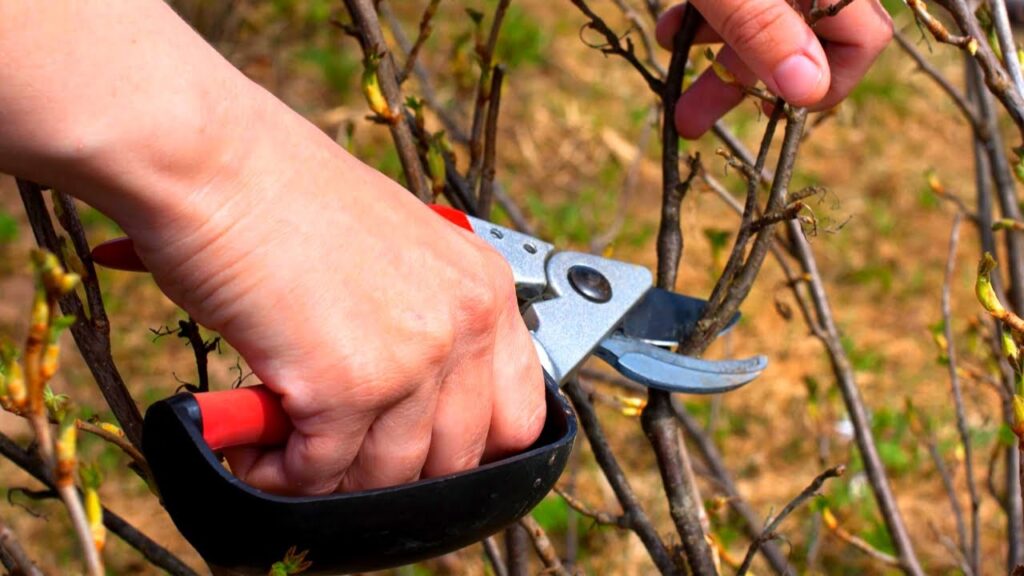 Осмотрите кусты и удалите все вздутые почки (при заражении клещом), а также сухие и повреждённые ветви. Всё срезанное обязательно сжигают.